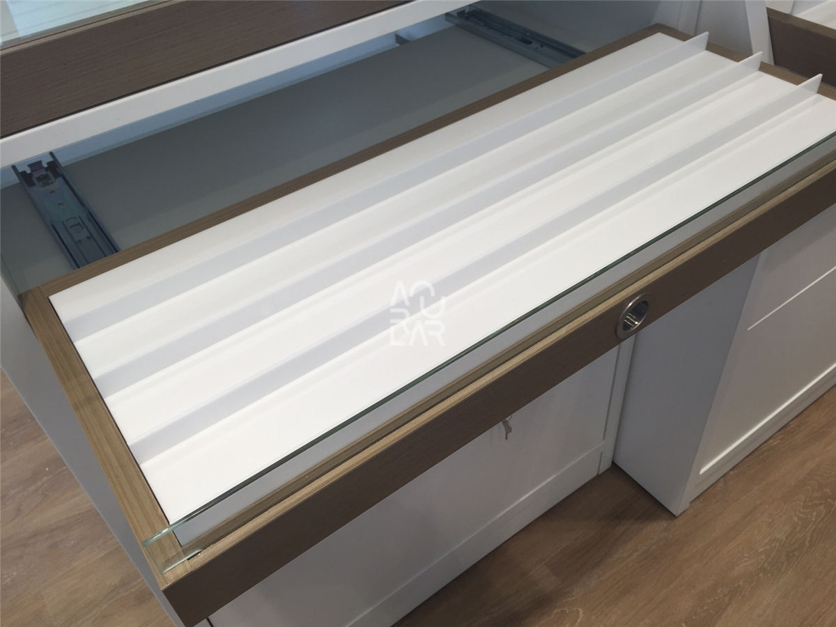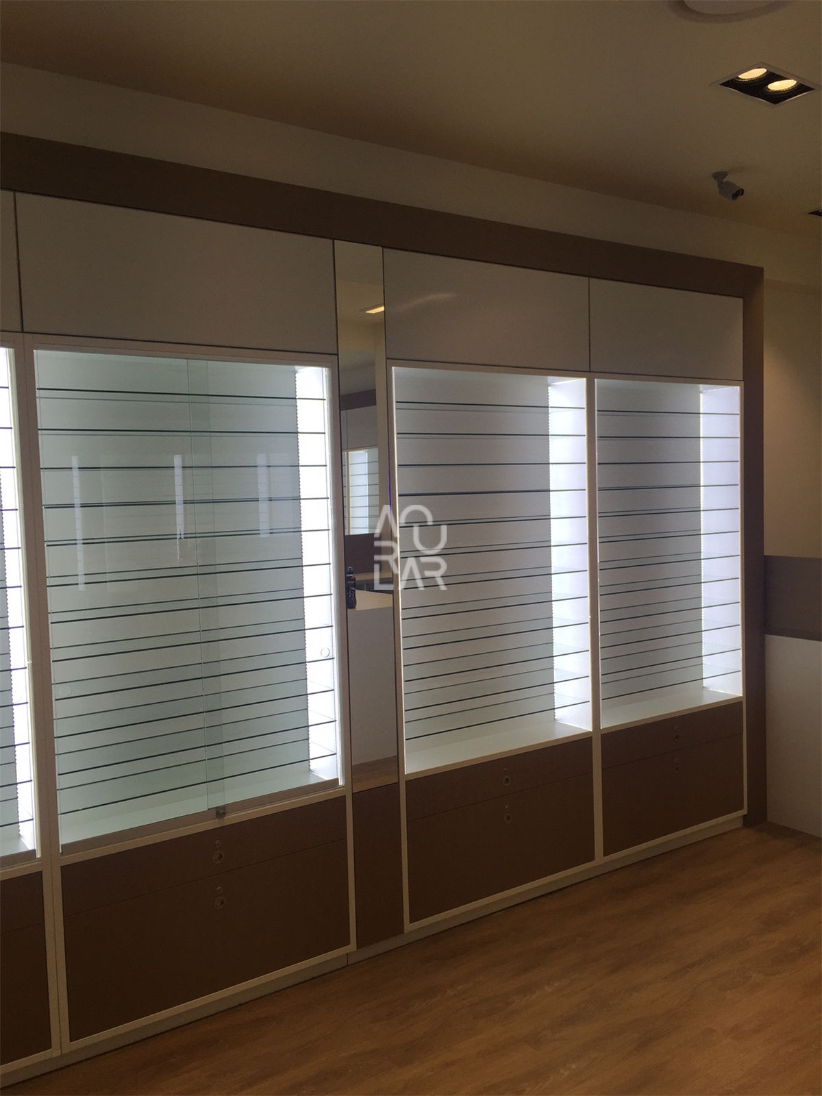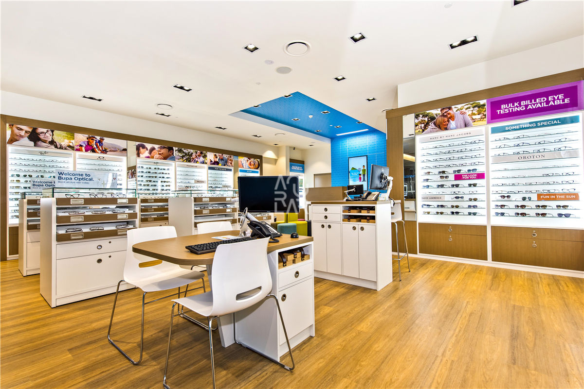 The various elements of the store aim to create a dialogue between the materials that characterise the glasses and the customers, in a contemporary re-interpretation of the classic simplex mouldings.We had a full long discussion with the Bupa store planning team to provide an impactful, simple design using melamine board instead of lacquer board, which is more durable, easier to clean, while reducing the overall cost by 60% of the budget.