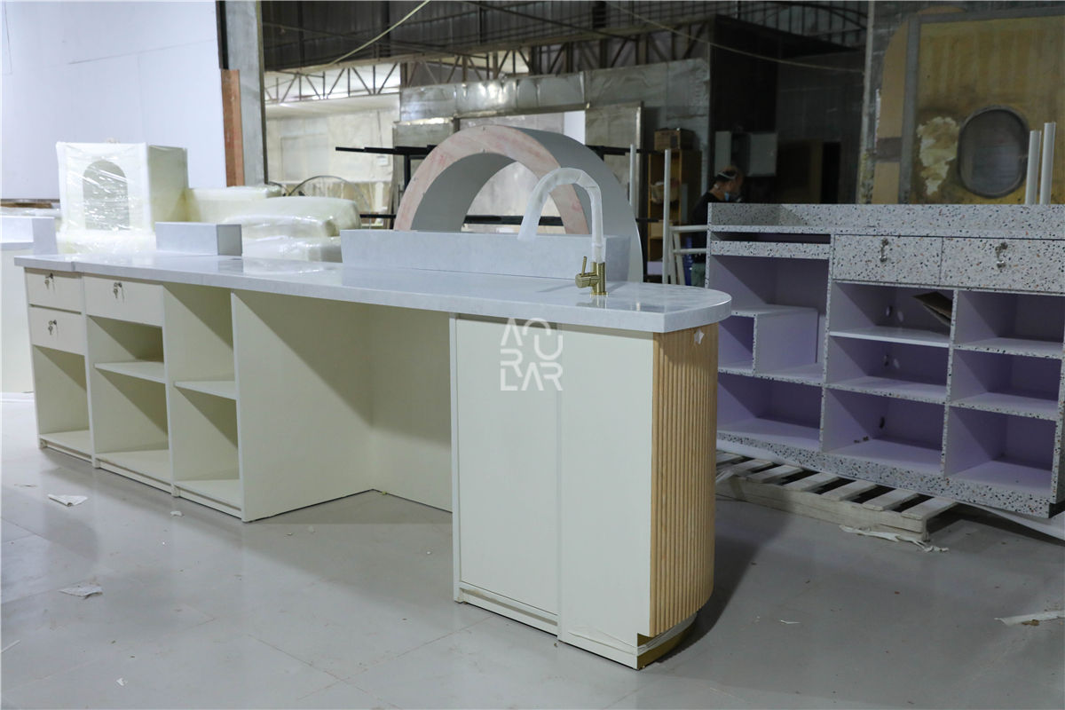 While, it’s the serious matter of budget tightly followed the confidence and design issues. The total amount is above their budget, we changed the structure, surface coating to control the cost within the budget, while not sacrificing the design appearance; such as we changed the surface processing of the shoes wall display by marble texture paper sticker instead of the original laminate design.