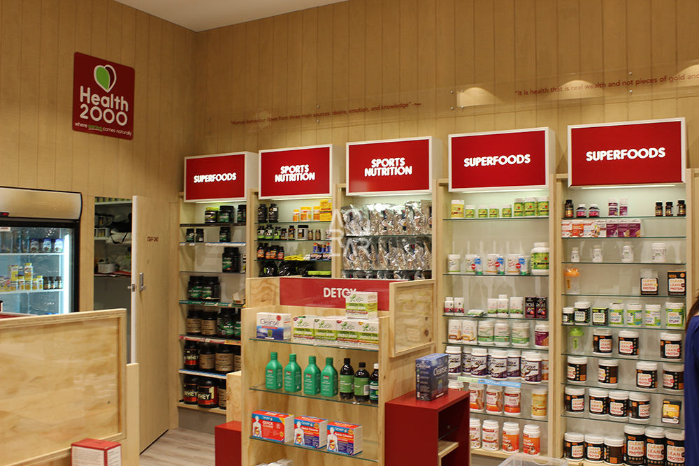 For Health 2000, a retailer focused on vitamins, supplements, and natural wellness products for health-conscious consumers, the store environment typically requires a clear, organised, and accessible layout. In this type of natural health retail, common challenges include managing space utilisation across a wide range of small packaged products, maintaining coherent display logic between categories such as supplements, skincare, and wellness goods, and ensuring fixtures provide durability while preserving material and structural consistency under frequent restocking.