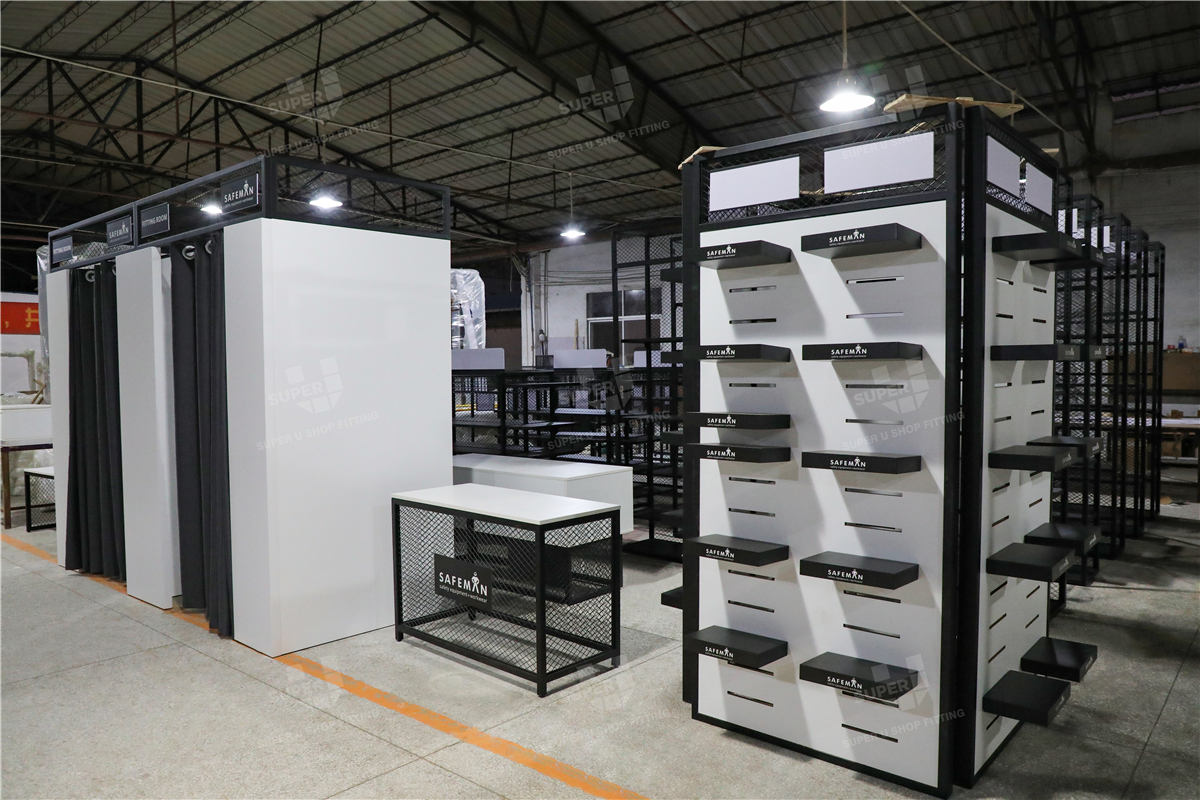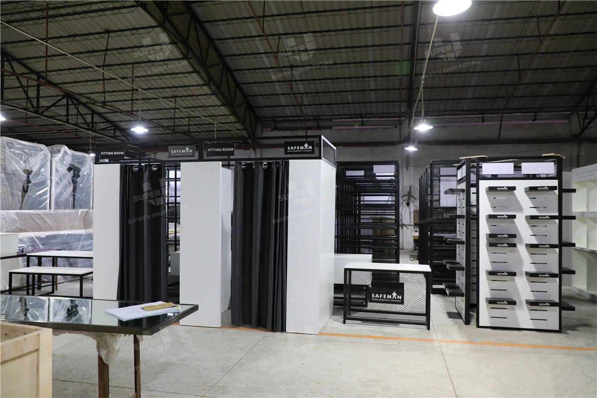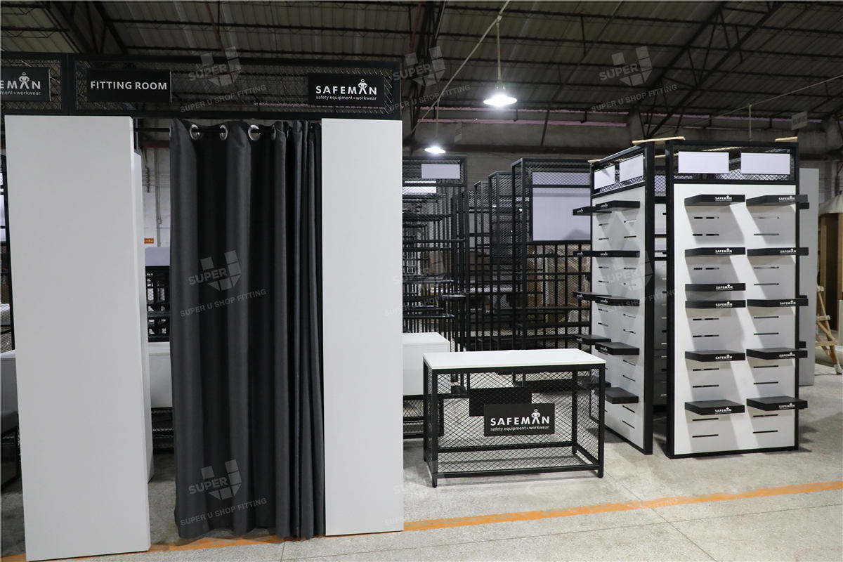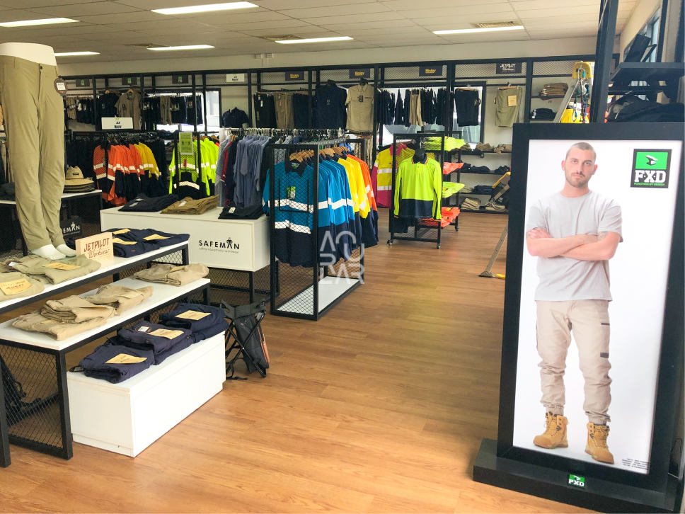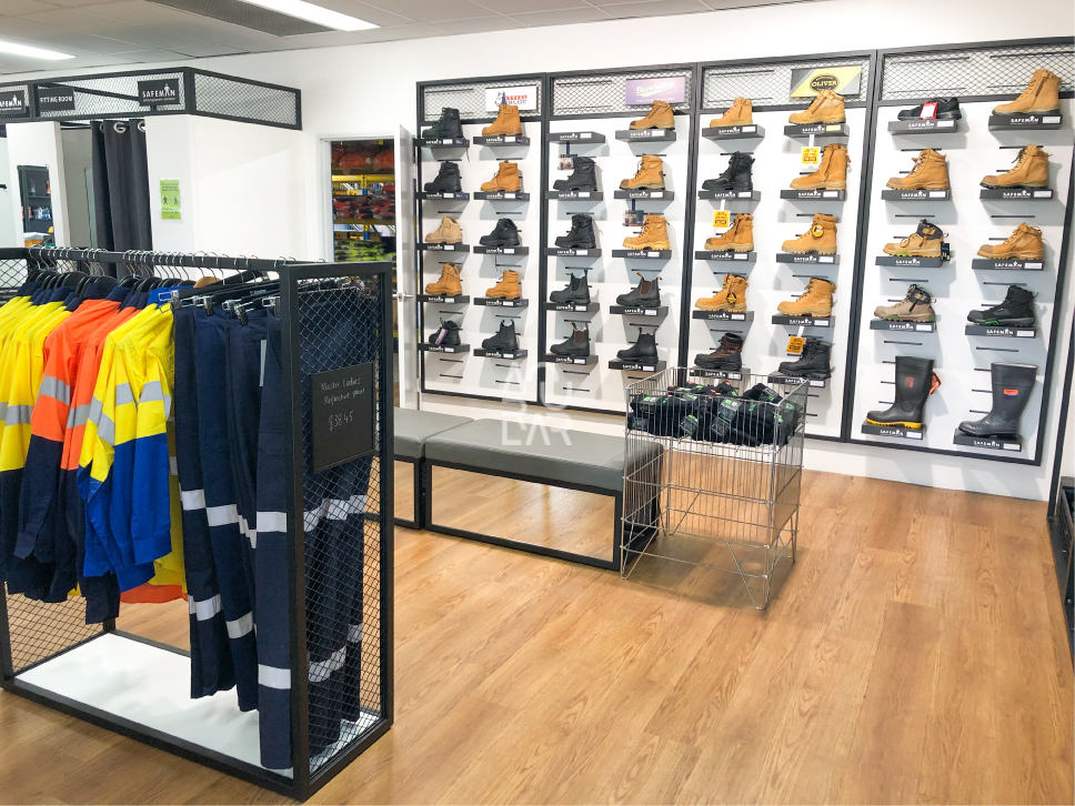 For Safeman, a retailer focused on protective equipment and industrial workwear for trade and commercial users, the store environment typically prioritises clarity, accessibility, and operational durability. In this type of retail, common challenges include managing bulky and varied product categories within limited floor space, maintaining a clear display logic across technical product ranges, and ensuring fixtures deliver long-term durability while preserving material and structural consistency under heavy use.